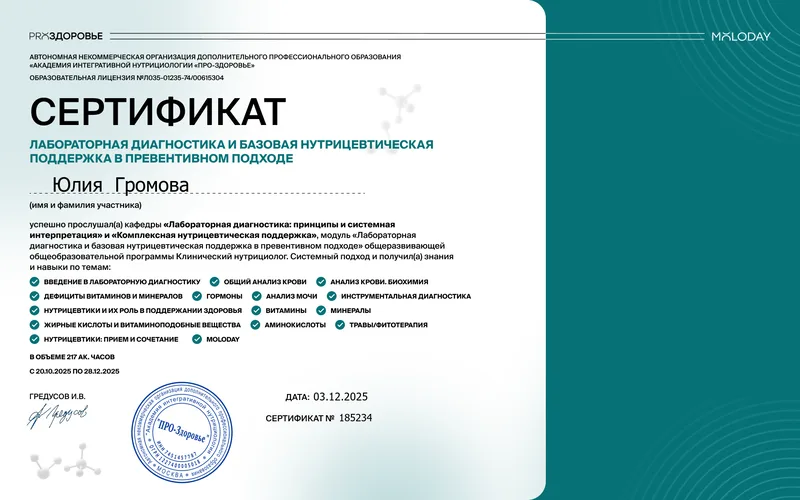 Интерпретации лабораторных показателей. Матрица питания. Анализ данных по CGMS - непрерывный мониторинг уровня глюкозы, трекеров, DNK тестов, анализов на органические кислоты.