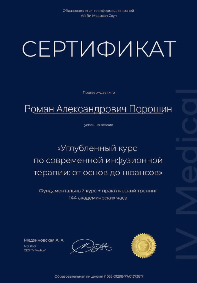 2. IV-терапевт (сертифицированный специалист по капельно-инфузионной терапии)