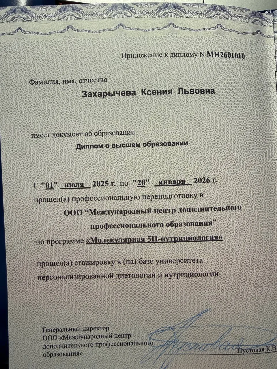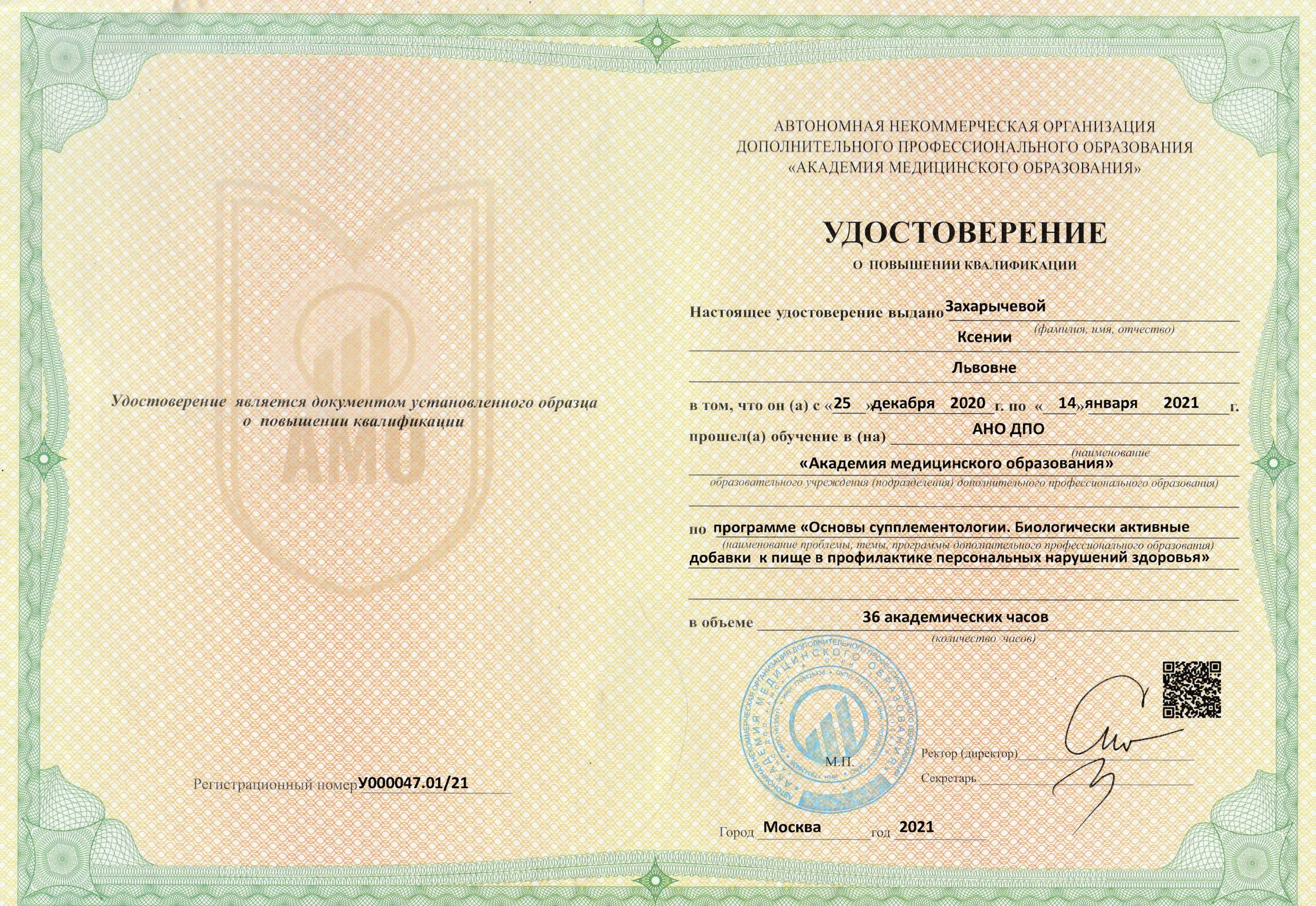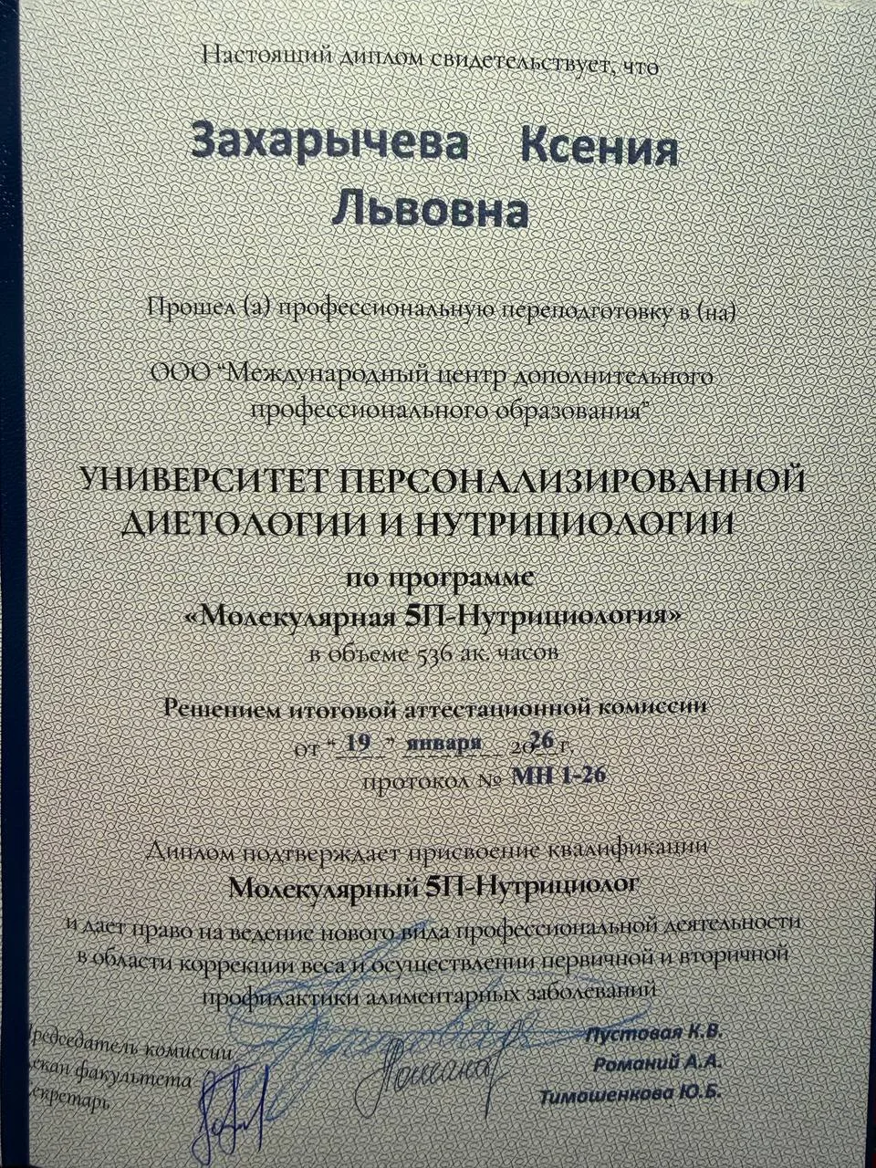 Захарычева Ксения Львовна